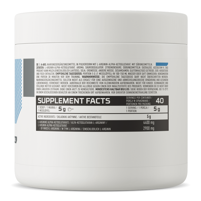 A-AKG to skuteczny kompleks, który działa jak pompa przedtreningowa, dzięki czemu może wspomagać ukrwienie mięśni. Nie zdziw się, że ma gorzki i nieprzyjemny smak. Możesz tego uniknąć, mieszając go z sokiem lub innym ulubionym napojem.