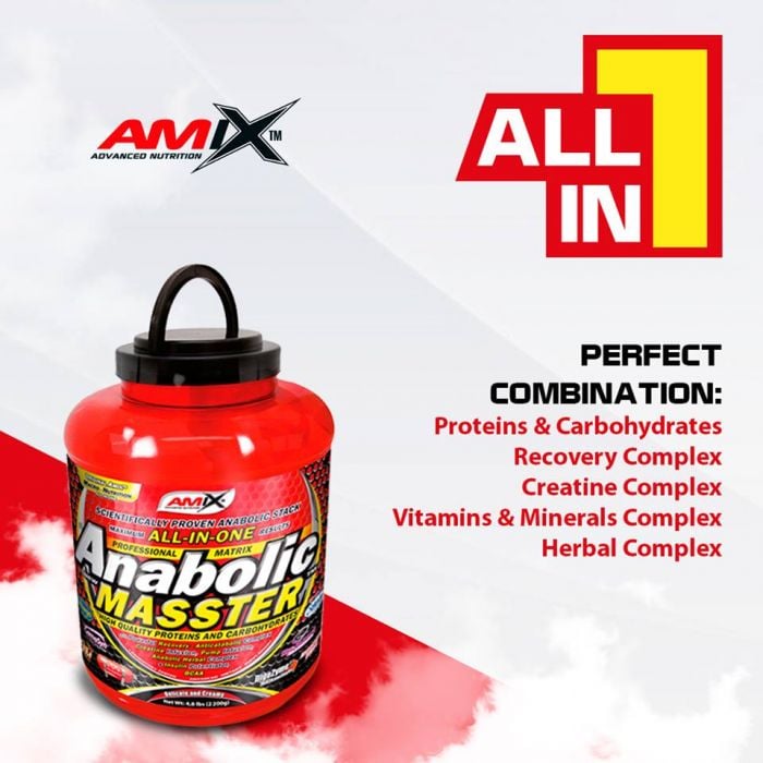 Anabolic Masster to wysokiej jakości mieszanka all-in-one zawierająca białka, węglowodany i inne starannie dobrane składniki. Wśród nich znajdują się np. minerały, enzymy trawienne, booster testosteronu Tribulus Terrestris i trzy różne rodzaje kreatyny. Produkt zawiera również szybko przyswajalne węglowodany dla wsparcia szybkiej regeneracji oraz glikogen w celu uzupełnienia uszczuplonych zasobów energii.