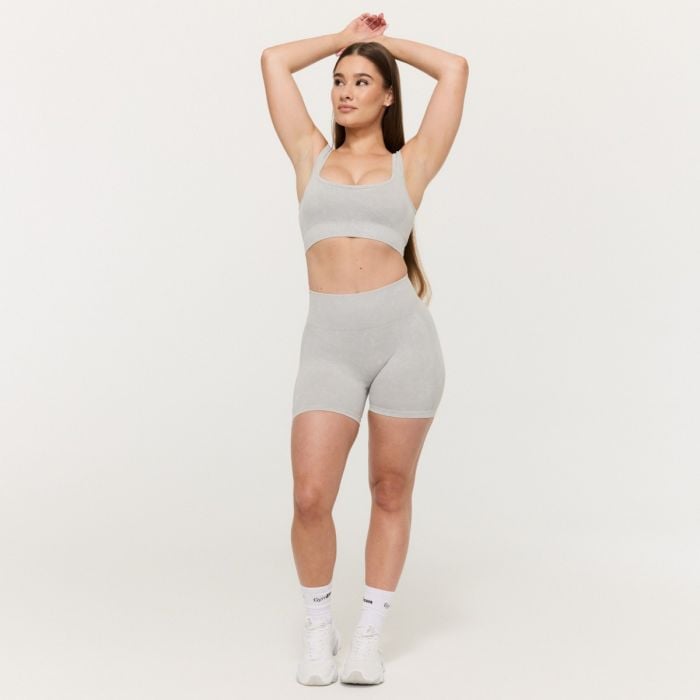 Dużą zaletą tego bezszwowego biustonosza sportowego jest fakt, że ma on wyjmowane wkładki. Dzięki temu można go dostosować do własnych potrzeb. Jego krój zyskuje również dzięki modnym kwadratowym wycięciom z przodu i z tyłu, które podkreślają dekolt i zgrabne plecy. Nadaje mu to również nowoczesnego wyglądu. Wisienką na torcie jest sprany wzór, który dopełnia styl vintage i jest zgodny z najnowszymi trendami. Biustonosz ma lekko marmurkowy design i wygląda jakby był wielokrotnie prany, a tym samym lekko zużyty. Nadaje mu to unikalny styl i przyciąga wzrok. Ogromną zaletą jest również fakt, że pasuje do innych ubrań. Doskonale komponuje się z szortami, legginsami i spodniami dresowymi. Ten bezszwowy biustonosz sportowy sprawi, że poczujesz nową motywację i siłę do ciężkiej pracy.
