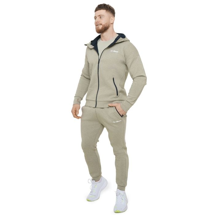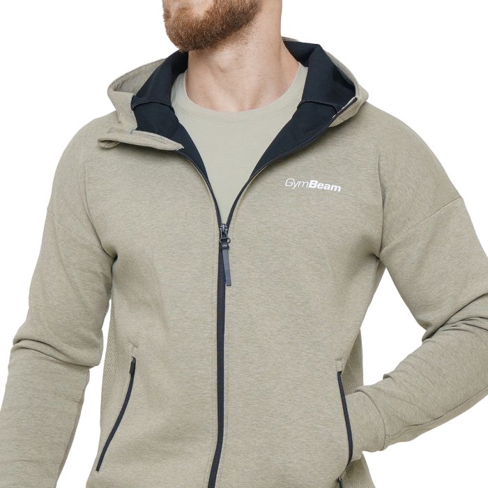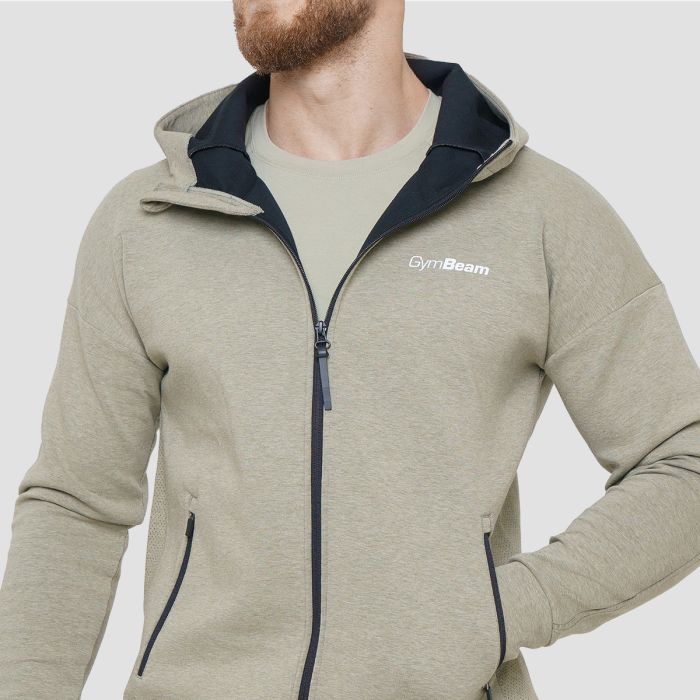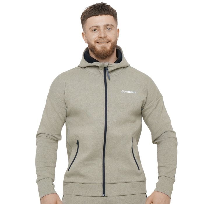 Agile Zip Up Hoodie Sage - GymBeam	Model ma 183 cm wzrostu i ma na sobie rozmiar L.