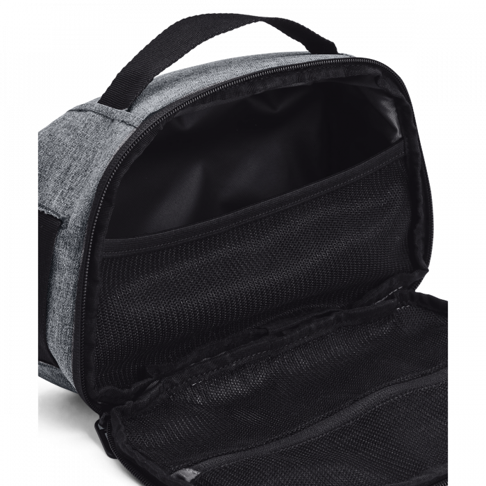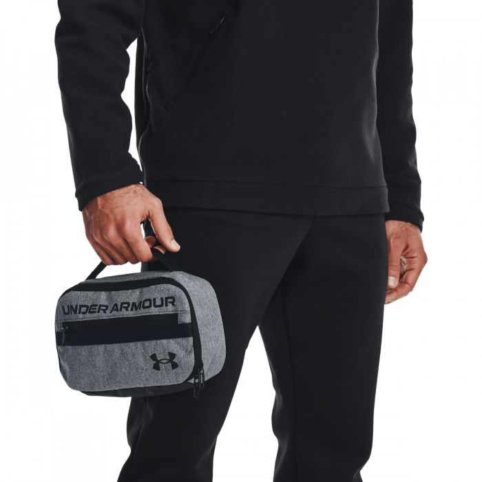 Contain Travel Kit Bag to bardzo praktyczna torba do bezpiecznego przechowywania twoich kosmetyków i suplementów odżywczych. Jest idealna na podróże lub wyjścia na siłownię, pozwalając ci zabrać wszystko, czego potrzebujesz. Ma pojemność 4 litrów i dzięki technologii UA Storm z łatwością ochroni zawartość przed wodą i innymi żywiołami. Ponadto jest wytrzymała, można na niej polegać i jest wyposażona w praktyczny zamek, który zagwarantuje, że nic z jej zawartości się przypadkowo nie zgubi.