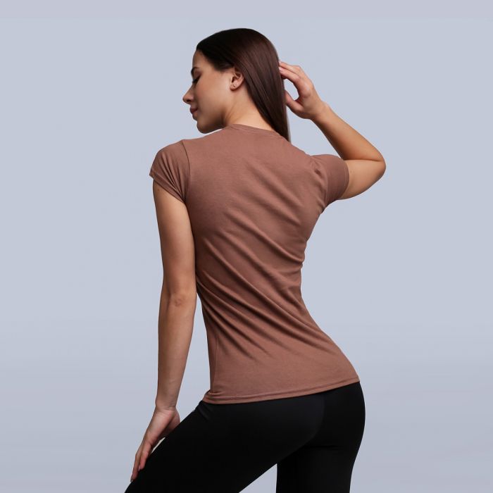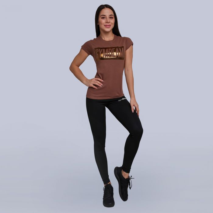 Box Logo Brown Bronze jest koszulką do fitnessu dla aktywnych kobiet, która jest idealna zarówno do treningu jak i codziennego noszenia