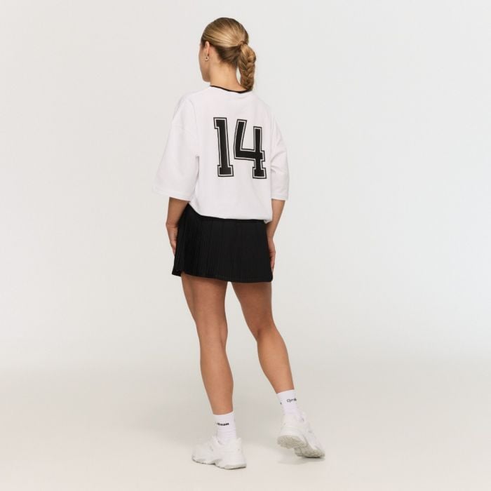 Damska koszulka Varsity Oversized to stylowy element o luźnym kroju, który łączy maksymalny komfort i nowoczesny sportowy design. Dzięki przewiewnemu materiałowi z 100% bawełny, możesz na niej polegać podczas każdego sportowego wyzwania, jak i codziennego noszenia.