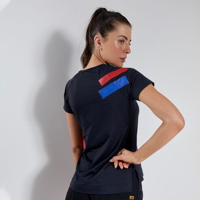 Damski Czarny T-shirt Blockletter ma dokładnie to, co powinien mieć t-shirt. Na pierwszy rzut oka przykuje twoją uwagę dzięki swojemu prostemu czarnemu designowi. Dzięki temu T-shirt łatwo się łączy. Będzie wyglądał doskonale ze sportowymi legginsami, tak samo jak i z dżinsami lub spódniczką. Jednocześnie zakochasz się w jego przyjemnym, lekkim materiale, który jest przewiewny, więc minimalizuje nadmierne pocenie się. Ma również wygodny krój, który nie ogranicza żadnych ruchów, więc możesz cieszyć się w pełni wszystkimi aktywnościami.