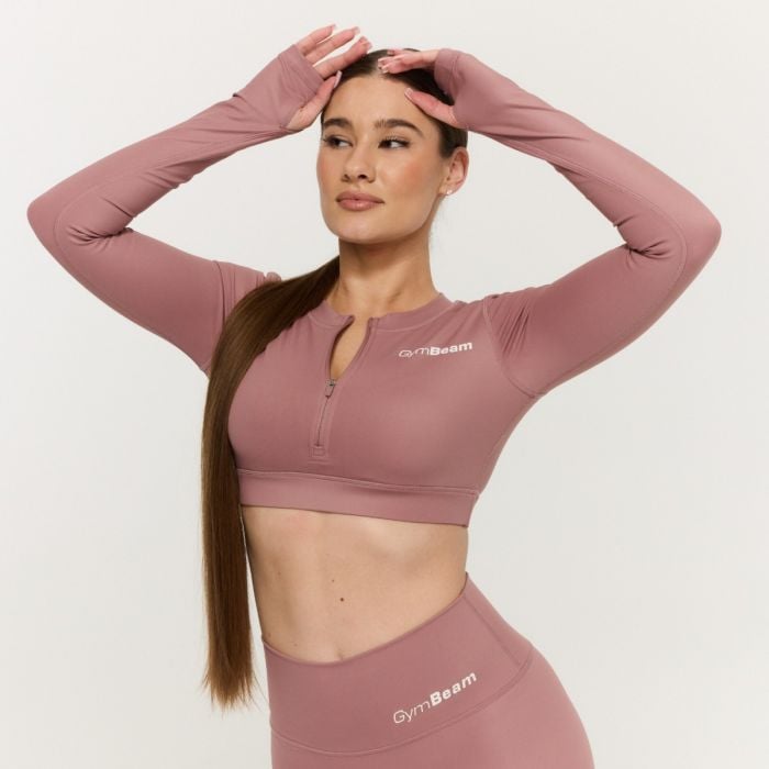 Ten funkcjonalny element garderoby charakteryzuje się krojem crop top, który w połączeniu z długimi rękawami wygląda bardzo nowocześnie i elegancko. Charakterystyczną cechą jest praktyczny przedni zamek błyskawiczny, który pozwala na regulację ciepła i ułatwia ubieranie. Rękawy zakończone są otworami na kciuki, co utrzymuje top na miejscu nawet podczas intensywnego ruchu i chroni dłonie. Ukryty wewnętrzny biustonosz z wyjmowanymi wkładkami zapewnia lekkie do średniego wsparcia, pozwalając ci w pełni skupić się na swoim treningu bez zbędnych rozproszeń.