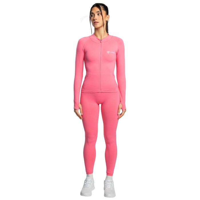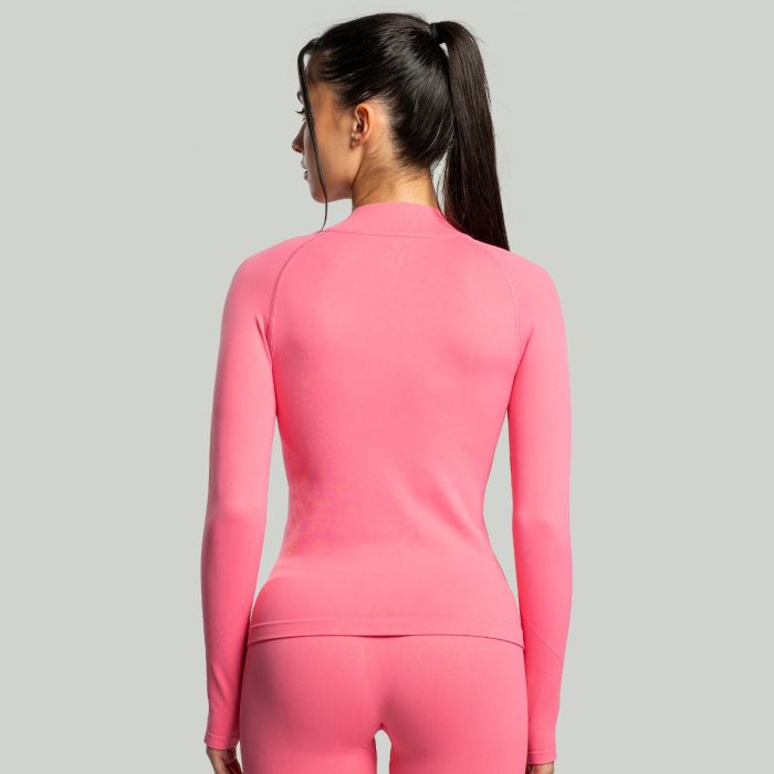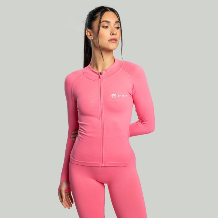 Damski top sportowy Seamless z zamkiem błyskawicznym to wyjątkowy model, który idealnie wpasuje się w Twoją garderobę. Wykonany z mieszanki nylonu i elastanu, doskonale przylega do ciała i niezawodnie odprowadza pot. Posiada również panele siatkowe dla lepszej przewiewności, pomagając zminimalizować pocenie się. Dzięki temu idealnie nadaje się nawet do najbardziej intensywnych treningów.