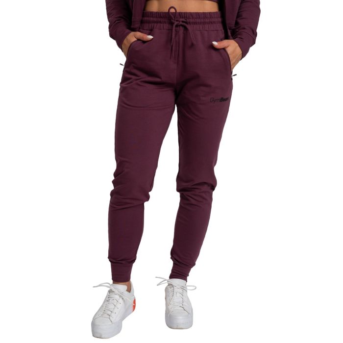 Women's TRN Joggers Eggplant - GymBeam Modelka ma 158 cm wzrostu i ma na sobie rozmiar S.