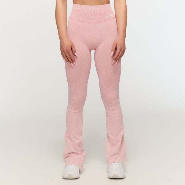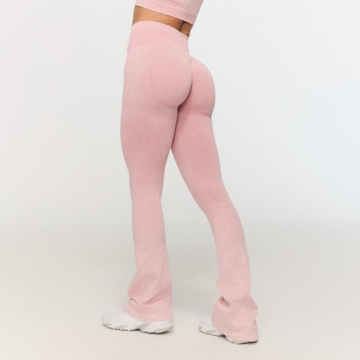Te funkcjonalne legginsy z efektem sprania zawierają design push-up i scrunch butt, który idealnie modeluje pośladki. Dzięki dopasowanemu krojowi oraz prążkowanemu wysokiemu stanowi pięknie podkreślają sylwetkę i uwydatniają krągłości. Od kolan w dół legginsy typu push-up stopniowo rozszerzają się, tworząc popularny krój flare. Jednocześnie zachowują minimalistyczny wygląd i łatwo łączą się z innymi elementami odzieży sportowej. Załóż te modne legginsy z rozszerzaną nogawką i ciesz się uczuciem pewności siebie oraz komfortu podczas każdego treningu.