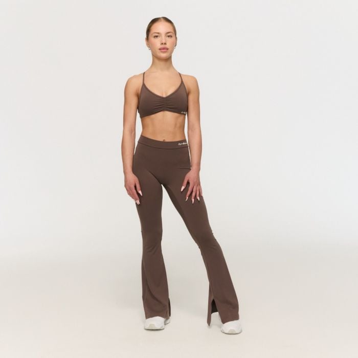 Główną zaletą tych legginsów jest design scrunch na pośladkach - krój bez szwu z przodu oraz wysoki stan z unikalnym V-kształtnym zszyciem z tyłu. W połączeniu z dopasowanym krojem w obszarze ud, który stopniowo poszerza się w modny design z rozszerzanymi nogawkami, tworzy wyjątkowe legginsy modelujące, które podkreślą Twoje krągłości. Dla jeszcze większej unikalności dodaliśmy rozcięcia po wewnętrznej dolnej stronie spodni. Jednocześnie zachowują minimalistyczny wygląd, dzięki czemu z łatwością połączysz je z ulubioną górą sportową, biustonoszem lub bluzą. Pokaż swoją siłę i wyrzeźbioną sylwetkę w legginsach sportowych, które dadzą Ci pewność za każdym powtórzeniem.