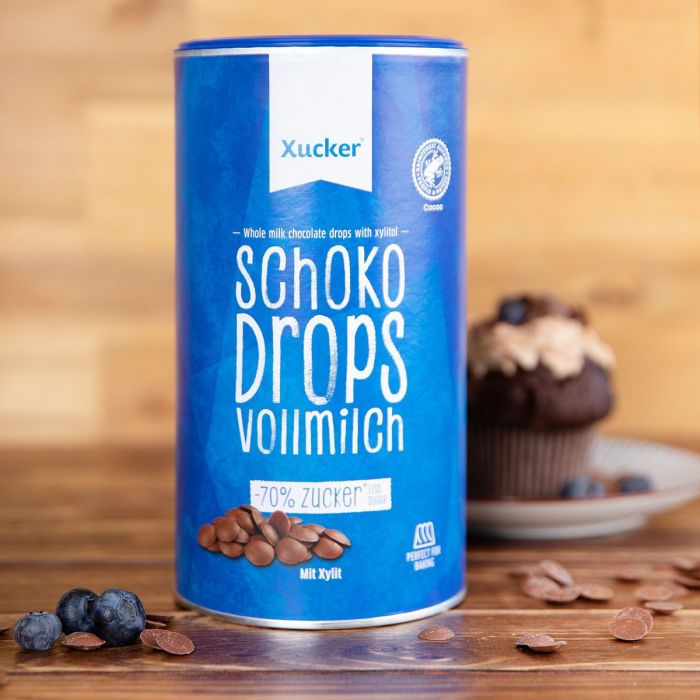 Whole Milk Chocolate Drops to kawałki pełnomleczej czekolady bez dodatku cukru, które są słodzone wyłącznie słodzikiem ksylitolem. Idealnie nadają się do wypieku ciasteczek, babeczek, robienia polew czekoladowych, domowej roboty musli, ale także do aromatyzowania owsianki czy jogurtu.