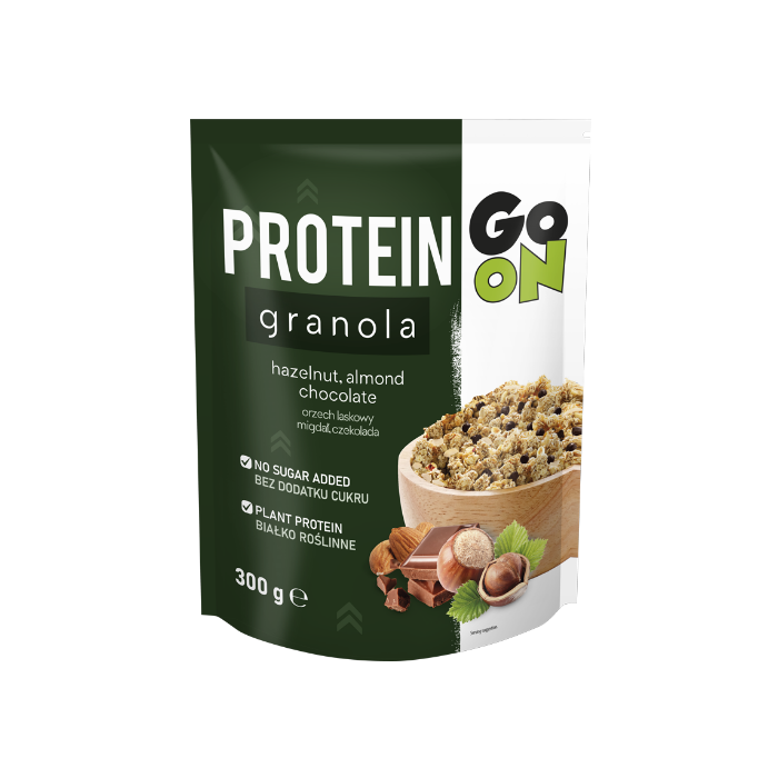 Granola proteinowa to pyszna śniadaniowa mieszanka pełnoziarnistych płatków owsianych o wysokiej zawartości błonnika i białka, które pochodzi z wysokiej jakości izolatu sojowego i przyczynia się do wzrostu lub utrzymania masy mięśniowej. Granola proteinowa nie zawiera dodatku cukrów, dzięki czemu może pochwalić się ich niską zawartością. Oferuje również witaminy i minerały, takie jak fosfor. Przyczynia się on do prawidłowego metabolizmu ważnego dla produkcji energii, ale także zachowania zdrowych kości i zębów.