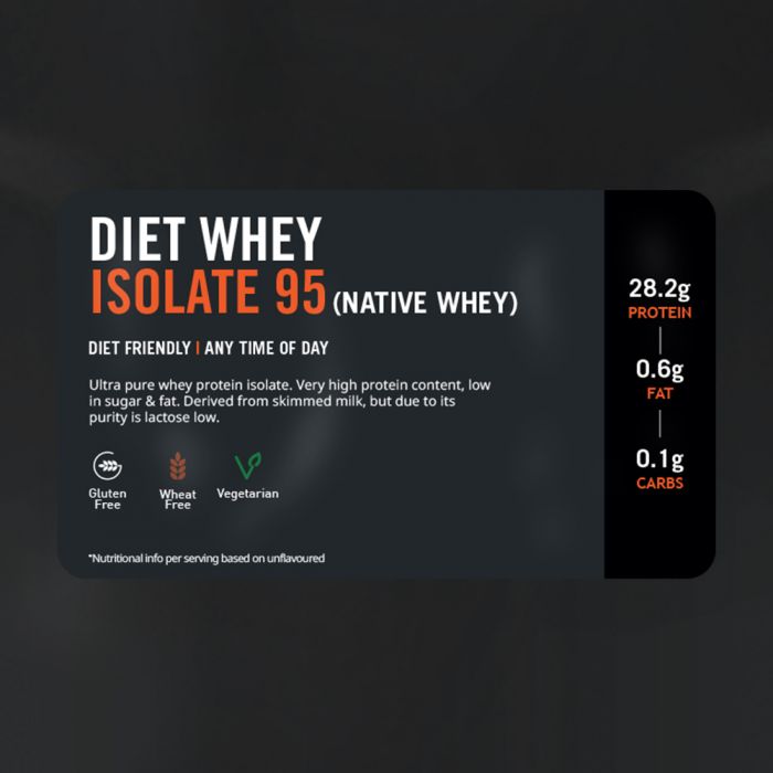 Diet Whey Isolate 95 Protein to najwyższej jakości izolat serwatki o wysokiej zawartości białka i niskiej zawartości laktozy