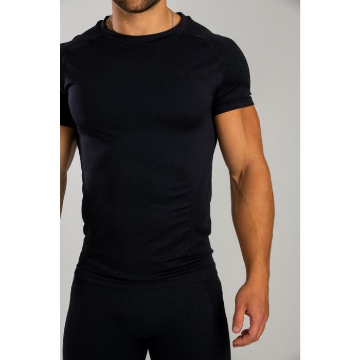 Koszulka funkcjonalna Infinity II to sportowa koszulka z krótkim rękawem, wykonana z funkcjonalnych materiałów o specjalnej konstrukcji. Jej materiały zapewniają świetne odprowadzanie wilgoci nawet podczas najcięższych treningów. Minimalistyczny design STRIX i stylowe, markowe rękawy uzupełnia bezszwowa technologia, w której zastosowano minimalną ilość szwów. Posiada ona tkane wzory i desenie. Oddychające strefy na plecach i po bokach zapewniają odpowiednią wentylację i czynią tę koszulkę wygodnym wyborem dla każdej aktywności sportowej, która wymaga maksymalnej wydajności.