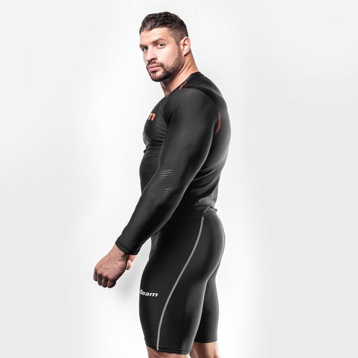 Compression T-shirt jest wykonany z wysokiej klasy materiału kompresyjnego, który ma wyjątkowe właściwości. Dzięki swemu składowi, utrzymuje on mięśnie Twoich ud i pozwala zwiększyć wydajność oraz obciążenie treningowe. Jednocześnie, doskonale usuwa on wilgoć z ciała oraz utrzymuje temperaturę Twego ciała. Będziesz czuł się komfortowo podczas uprawiania każdego sportu.