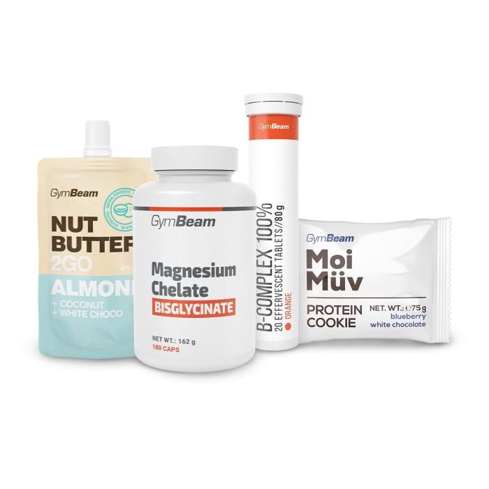 - opakowanie 90 kapsułek + masło migdałowe Nut Butter 2GO oraz 100% witaminy B-Complex w formie musujących tabletek