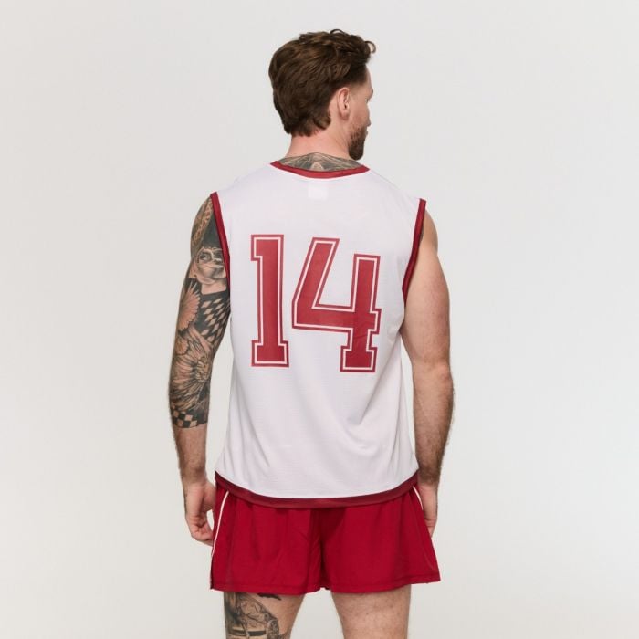 Męski tank top Varsity – męski oversize'owy top z siatki z niepowtarzalnym koszykarskim designem