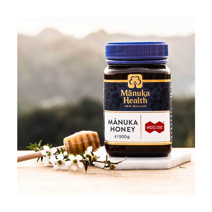 MGO™ 250+ Miód Manuka to najwyższej jakości 100% miód pszczeli z Nowej Zelandii, który dzięki precyzyjnej produkcji zachowuje wysoką jakość i doskonałą czystość. Zawiera składnik metyloglioksal (MGO), minimum 250 mg na kilogram miodu. To sprawia, że jest to doskonały słodzik.