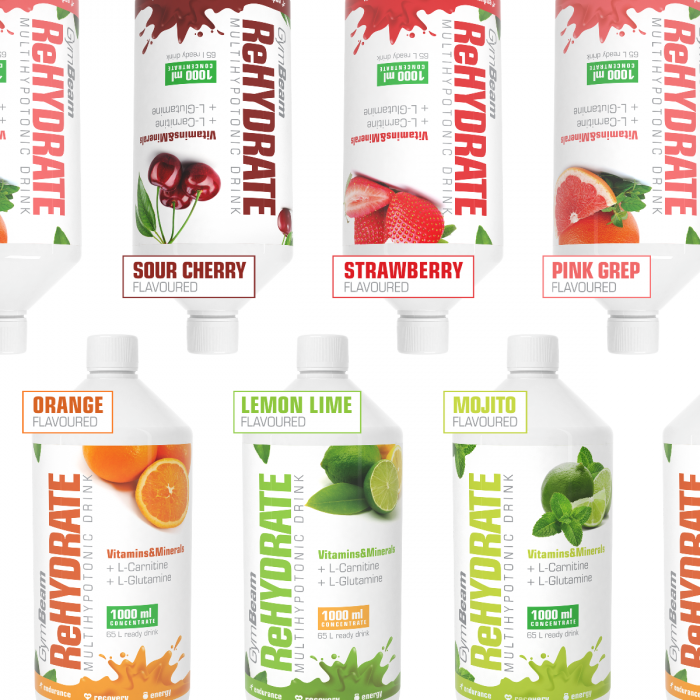 Napój jonowy ReHydrate to orzeźwiający, skoncentrowany napój zawierający wybrane witaminy, minerały, L-glutaminę, taurynę i L-karnitynę. Jest to hipotoniczny napój sportowy, który jest idealny do dostarczania składników odżywczych podczas ciężkich treningów. Dzieje się tak, ponieważ elektrolity, takie jak zawarty magnez, chlorek, potas i sód są często tracone przez pocenie się podczas intensywnej lub wytrzymałościowej aktywności. Ponieważ jest to skoncentrowana mieszanka tych substancji, należy ją rozcieńczyć z wodą. Można go spożywać przed ćwiczeniami fizycznymi, w ich trakcie lub po nich.