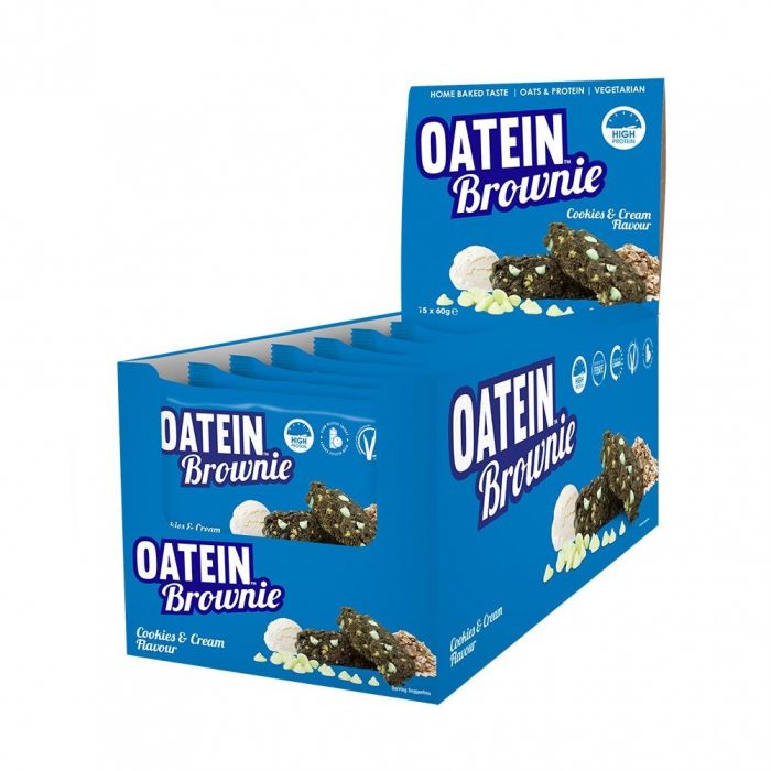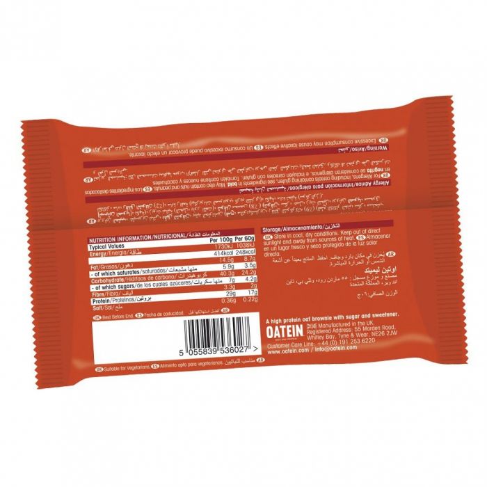 Oatein Brownie to wyjątkowa przekąska białkowa zaprojektowana przez grupę ekspertów żywieniowych w celu spełnienia wymagań zdrowej i zbilansowanej diety. Doskonały smak, wysokiej jakości białko, duża ilość błonnika i węglowodanów złożonych - wszystkie te ważne czynniki zostały spełnione! To słodkie brownie (60 g) zawiera 17 g białka, i mówiąc wprost, warto mieć je zawsze pod ręką, gdy masz ochotę na coś słodkiego.