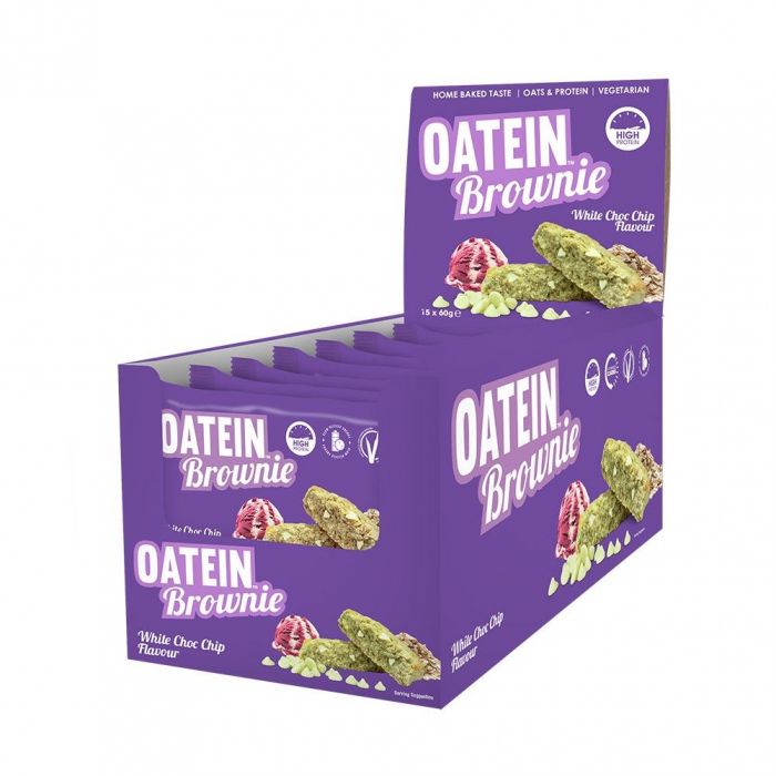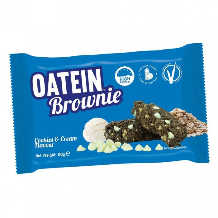 Oatein Brownie to wyjątkowa przekąska białkowa zaprojektowana przez grupę ekspertów żywieniowych w celu spełnienia wymagań zdrowej diety. Doskonały smak, wysokiej jakości białko, duża ilość błonnika i węglowodanów złożonych. To słodkie brownie (60 g) zawiera 17 g białka i mówiąc wprost, warto mieć je zawsze pod ręką, gdy masz ochotę na coś słodkiego.