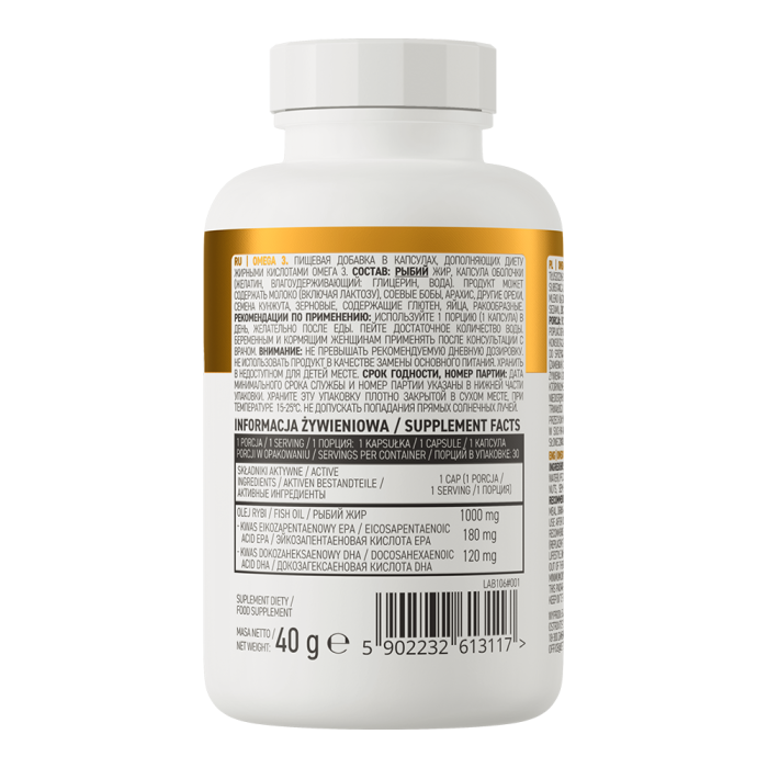 Omega 3 to kapsułki zawierające olej rybi, który jest naturalnym źródłem kwasów tłuszczowych omega-3 w postaci kwasu eikozapentaenowego (EPA) i kwasu dokozaheksaenowego (DHA). Razem wspierają one prawidłową pracę serca.