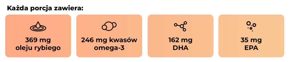 - zawierają olej rybi z kwasami tłuszczowymi omega-3