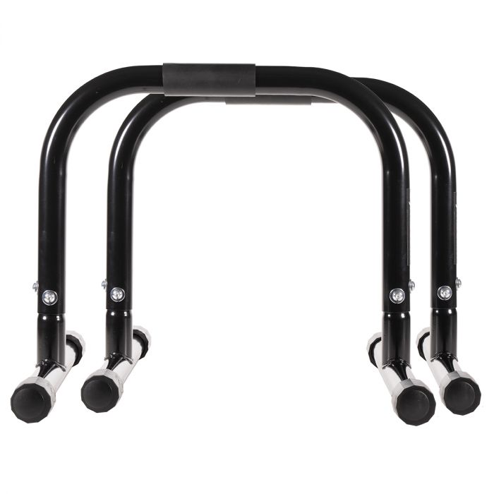 Poręcze Treningowe DIP I to praktyczne narzędzie, które każdy prawdziwy miłośnik fitness powinien mieć w domu. Szczególnie nadają się do domowego treningu siłowego z masą własnego ciała i ćwiczeń, takich jak pompki, dipy, elementy gimnastyczne i wiele innych ćwiczeń na górne partie ciała i rdzeń. Ich konstrukcja jest mocna i stabilna, więc wytrzyma każdy duży ciężar. Uchwyt ma 38 mm średnicy i jest wykonany z antypoślizgowego materiału dla zapewnienia pewnego chwytu. Całkowita długość poręczy wynosi 48 cm, a drążek znajduje się na wysokości 43 cm.