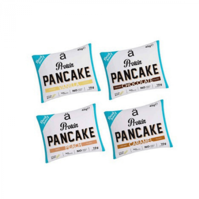 Protein Pancake to pyszna przekąska białkowa, która zawiera 16 g białka. Ten razowy przysmak ma niską zawartość kalorii nie posiada cukru. Możesz wybierać spośród czterech smaków kremowych. Spożywaj go bez wyrzutów sumienia!