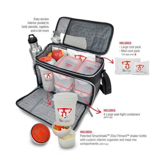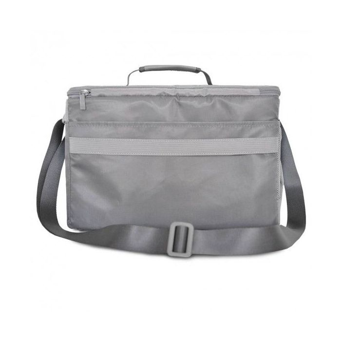 The BOX LG food bag w szarym kolorze, do której możesz zapakować całe Twoje zdrowe jedzenie w różnych opakowaniach i zabierać je ze sobą gdziekolwiek. Jest to rewolucyjny organizer na Twoje osobiste dania. Wspaniały design. Najwyższej jakości materiały. Innowacyjne cechy. Lekka i łatwa do noszenia torba wykonana z wysokiej jakości materiału - nylonu balistycznego. Ma wyściełany pasek, który można odczepiać. W torbie tej są zawarte cztery dobrze uszczelnione przegrody (bez BPA) na jedzenie, poręczny opatentowany szejker (bez BPA) na Twoje witaminy, suplementy i białka oraz 2 chłodzone żelem (1 duża i 1 średniego rozmiaru - obydwie testowane przez TSA), do utrzymywania żywności w chłodzie.