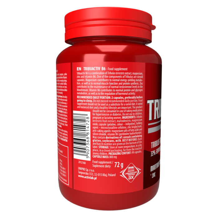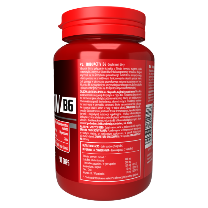 Tribuactiv B6 to skuteczna formuła łącząca w sobie cynk, magnez i witaminę B6 z ekstraktem roślinnym z Tribulus Terrestris. Ze względu na wyselekcjonowaną listę składników, której przewodzi cynk, jest to jeden z popularnych testoboosterów stosowanych przez sportowców i innych aktywnych mężczyzn.